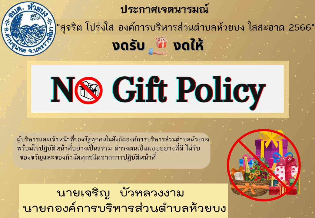 ประกาศเจตนารมณ์นโยบาย No. Gift Policy จากการปฏิบัติหน้าที่
