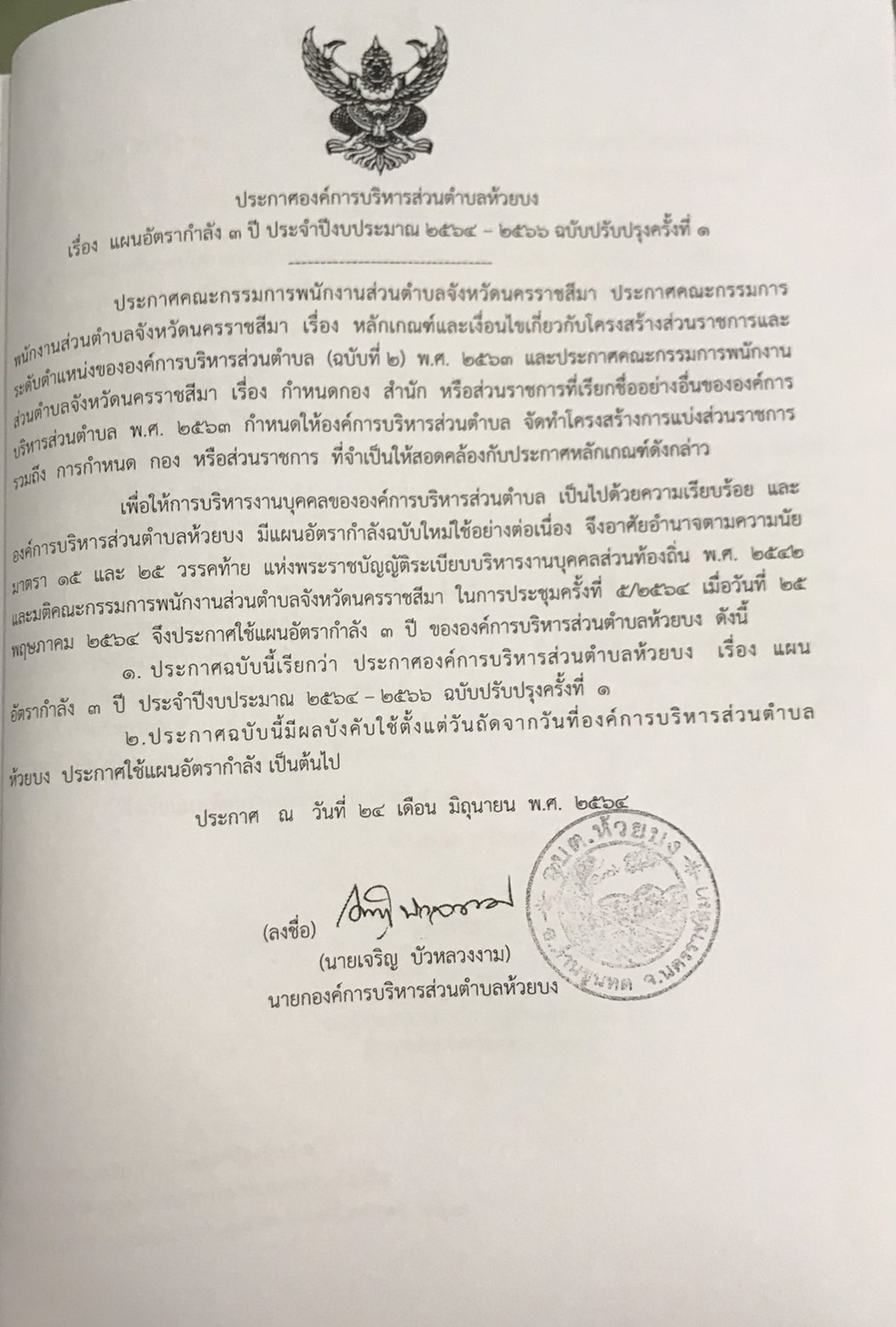 ประกาศใช้แผนอัตรากำลัง 3 ปี