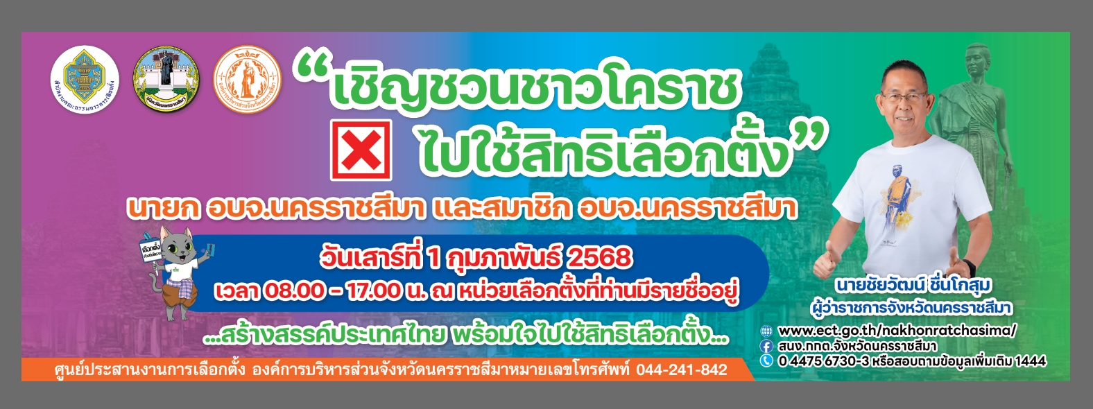 ขอเชิญชวนผู้มีสิทธิเลือกตั้ง ไปใช้สิทธิเลือกตั้ง นายก อบจ.นครราชสีมาและสมาชิก อบจนครราชสีมา